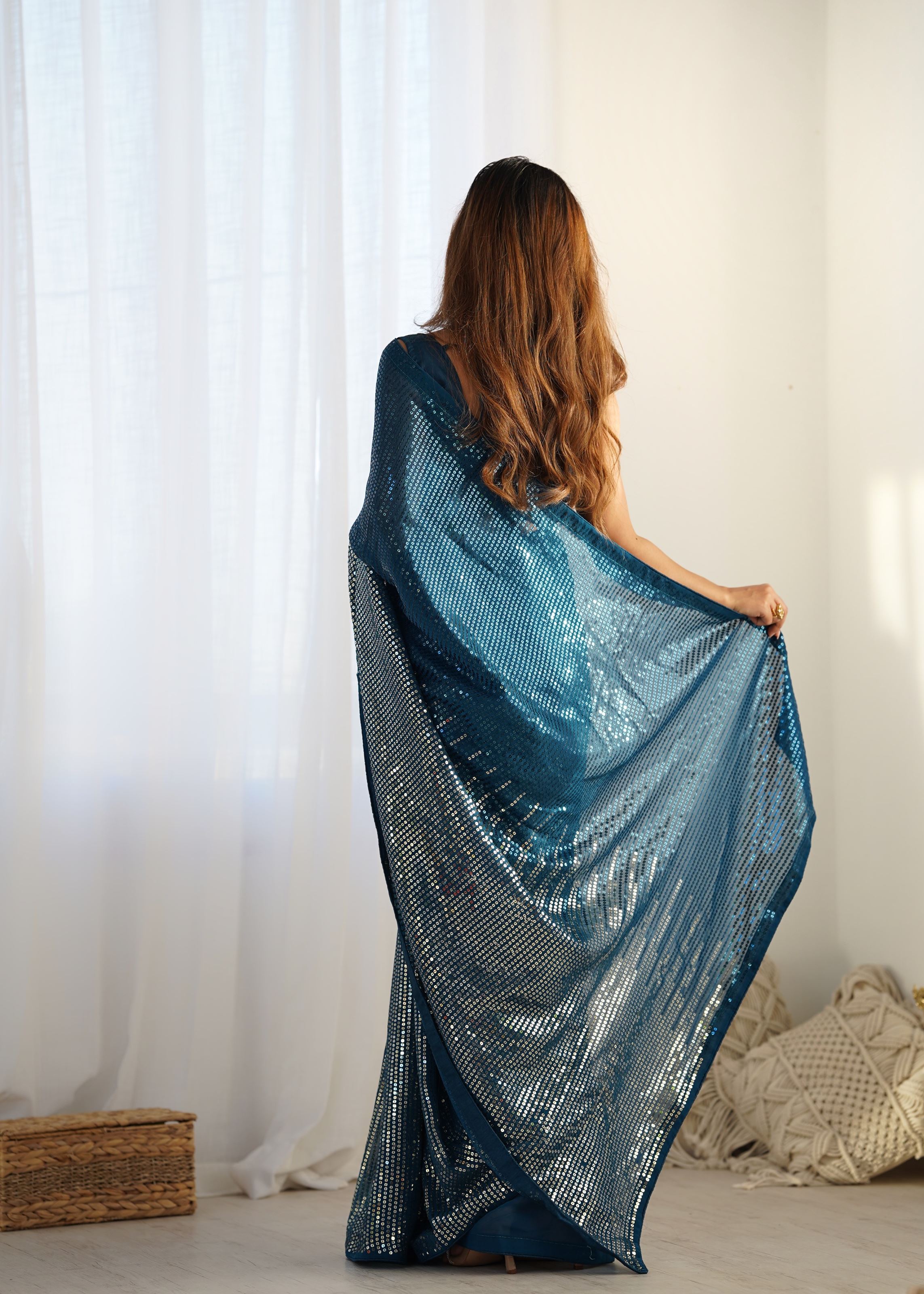 Petrol Georgette Designer Sequance Embroidery Work Bollywood Style Partywear Saree