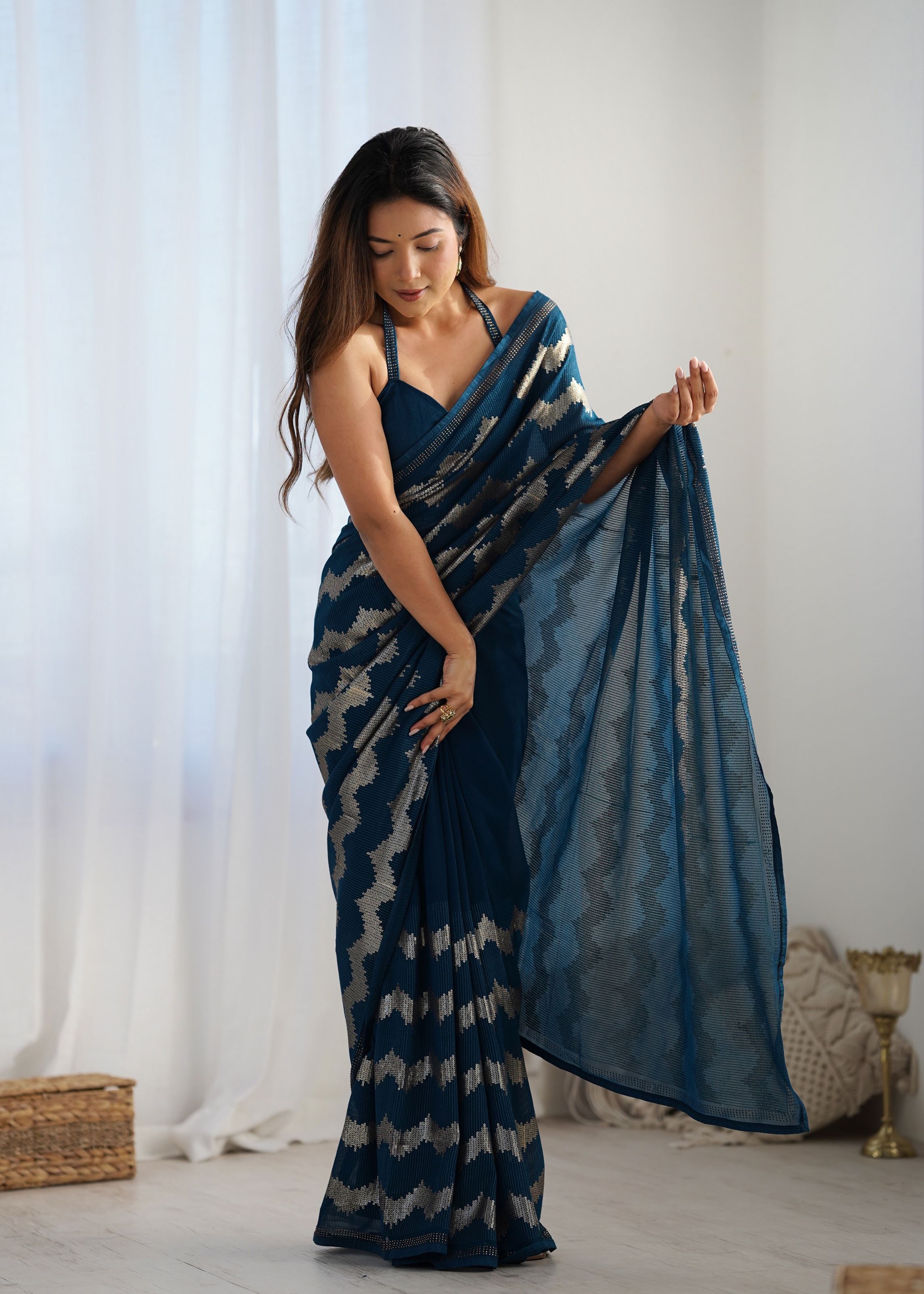 Petrol Georgette Fabric Glamorous Bollywood Party Sequins Saree