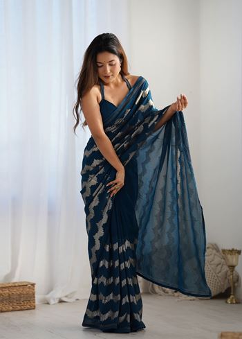 Aethnofit Fashions presents a curated collection of designer sarees online, including georgette, chiffon, and other luxurious fabrics. Explore our Bollywood Saree Blouse collection for partywear or browse our bridal and ethnic wear selections for special occasions. Enjoy affordable luxury, fast delivery, and exclusive deals while embracing the latest 2025 ethnic fashion trends.This petrol georgette sequins saree is the perfect combination of glamour, elegance, and contemporary style. Available for worldwide shipping, including USA and India, you can shop confidently from our online boutique and elevate your ethnic wardrobe with premium designer sarees.