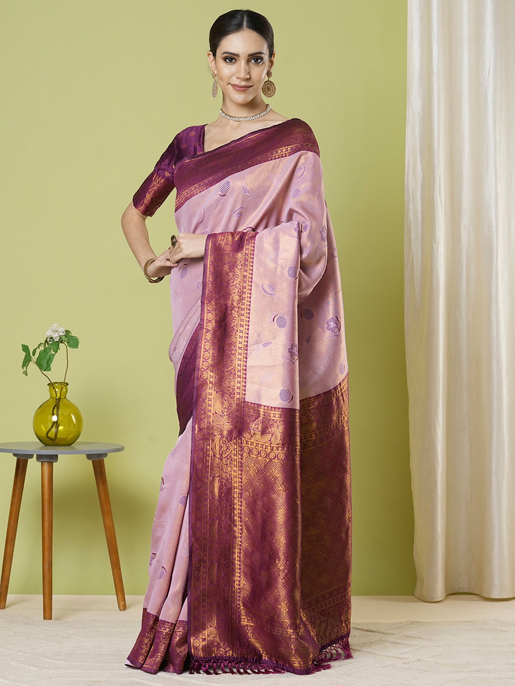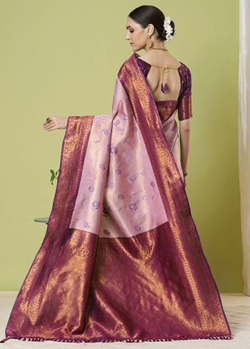 Pink Banarasi Silk Saree With Beautiful Jacquard Designer Work