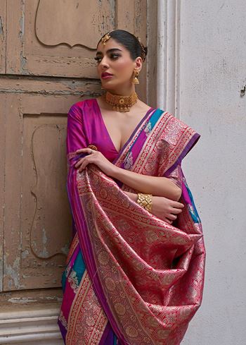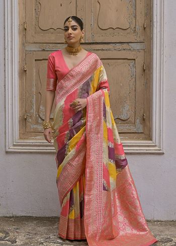 Pink Banarasi Silk Saree with Leriya Zari and Contrast Pallu