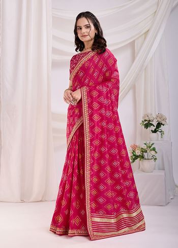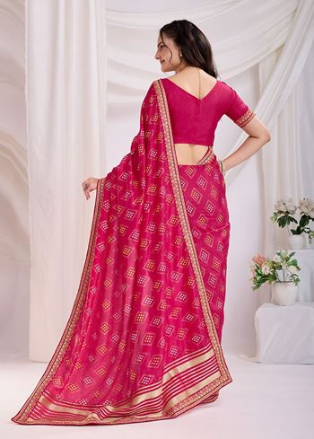 Pink Beautiful Bandhej Printed With Embroidery Work Vichitra Silk Saree