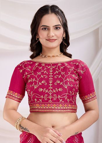 Accompanied by a matching pink art silk blouse, the set offers endless styling possibilities, from keeping it simple for a sophisticated look to pairing it with statement jewelry for a regal appearance.Perfect for bridesmaids, festive functions, or traditional ceremonies, this saree is a symbol of heritage, charm, and modern grace, ensuring you radiate beauty at every occasion.