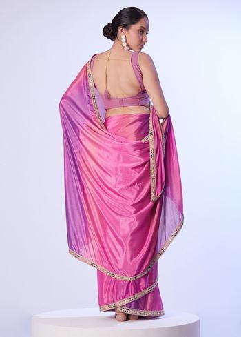 Pink Beautiful Chinon Solid Designer Bollywood Party Saree