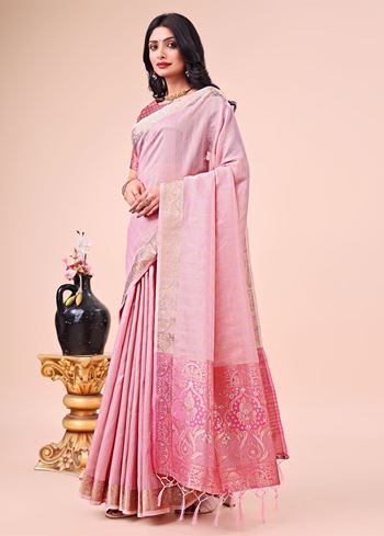 Accompanied by a matching pink organza blouse, this saree completes your look with seamless harmony. Its lightweight fabric ensures comfort and easy draping, while the woven craftsmanship highlights traditional artistry blended with modern appeal. Versatile and stylish, this saree can be adorned with subtle jewelry for a graceful day look or styled with statement accessories for a glamorous evening appearance.