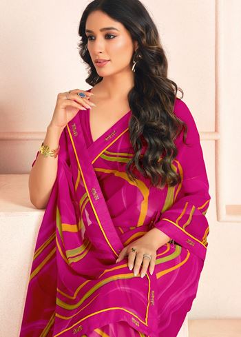 Pink Bemberg Georgette Elegant Designer Digital Printed Ceremonial Classy Saree
