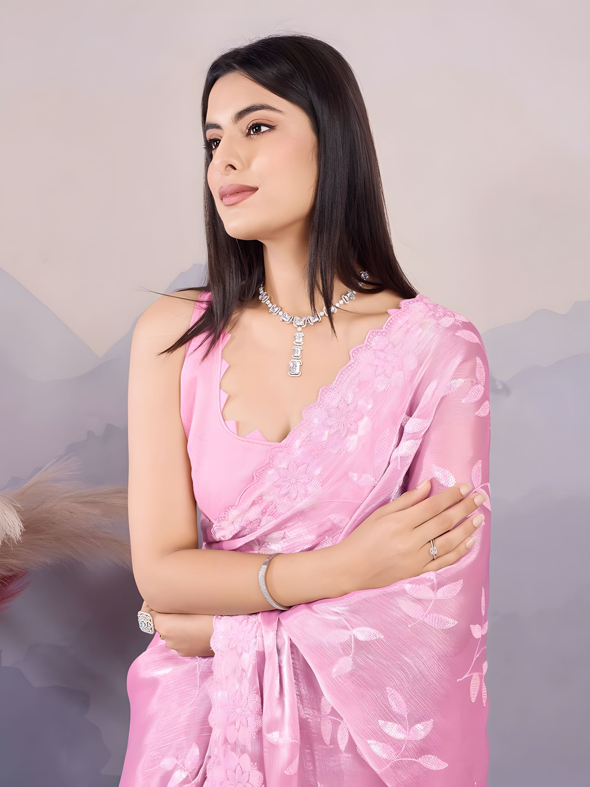 Pink Burberry Silk Saree with C Pallu Embroidery with sequins Work