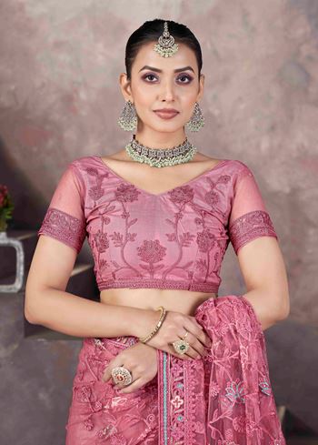 Accompanying the saree is a matching pink net blouse, designed to harmonize with the overall look, ensuring an effortlessly stylish ensemble. Pair this designer saree with statement jewelry, a chic hairstyle, and classic footwear for an unforgettable ceremonial appearance.Whether you are attending a family function or stepping into a grand event, this pink embroidered butterfly net saree will keep you in the spotlight. Its blend of traditional elegance and contemporary charm makes it an absolute must-have for every woman’s ethnic collection.