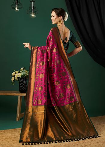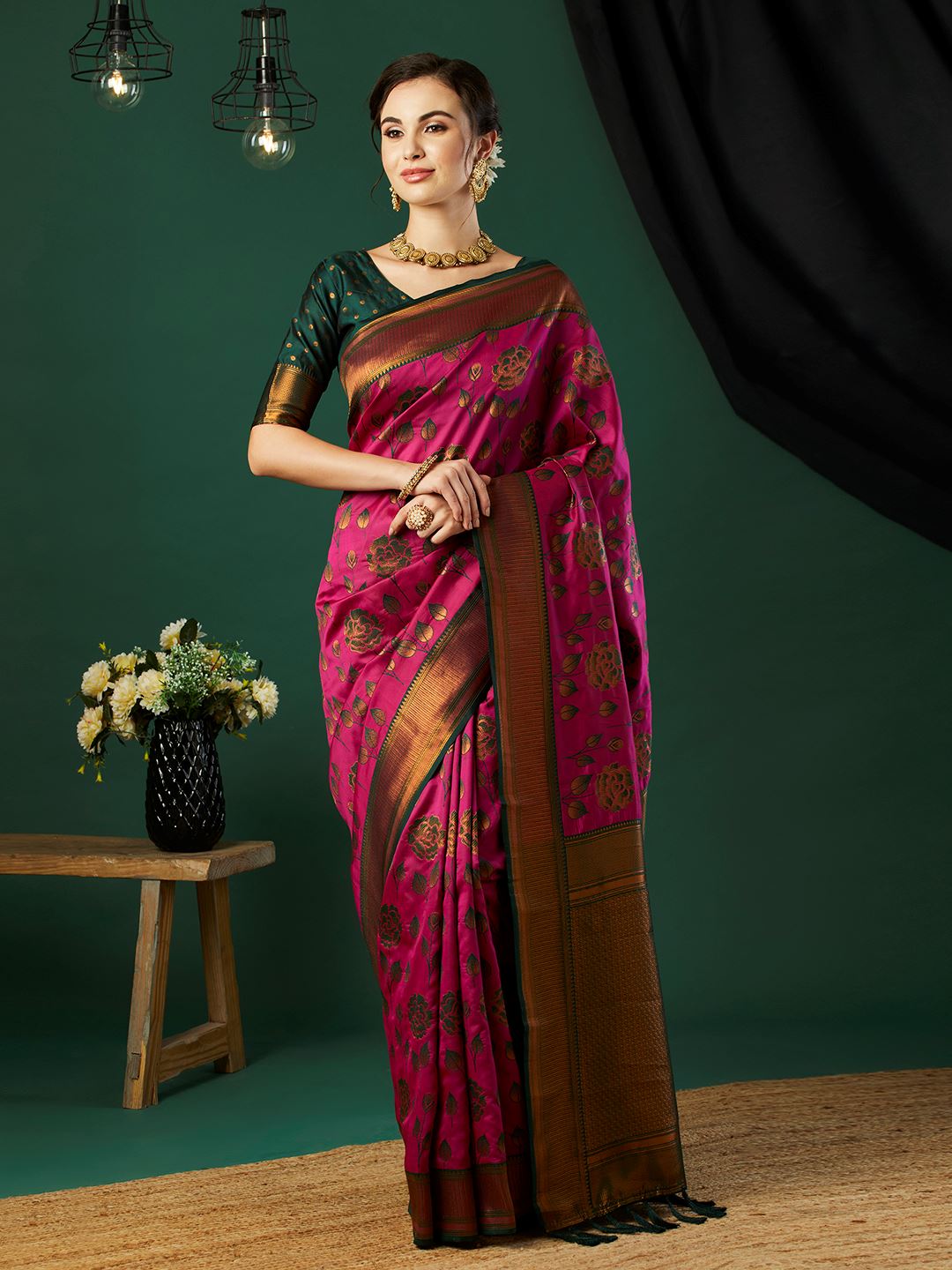 Pink Ethnic Banarasi Silk Saree With Floral Woven Designer Looks