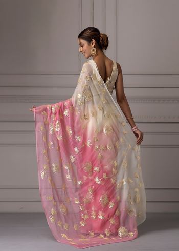 Pink Girlie Organza Designer Gota Patti Work Traditional Rich Saree
