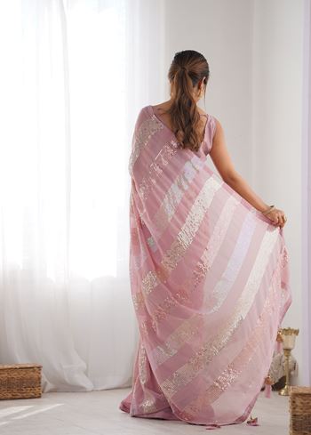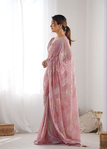 Pink Glamorous Georgette Fabric Sequins Work Bollywood Looks Saree