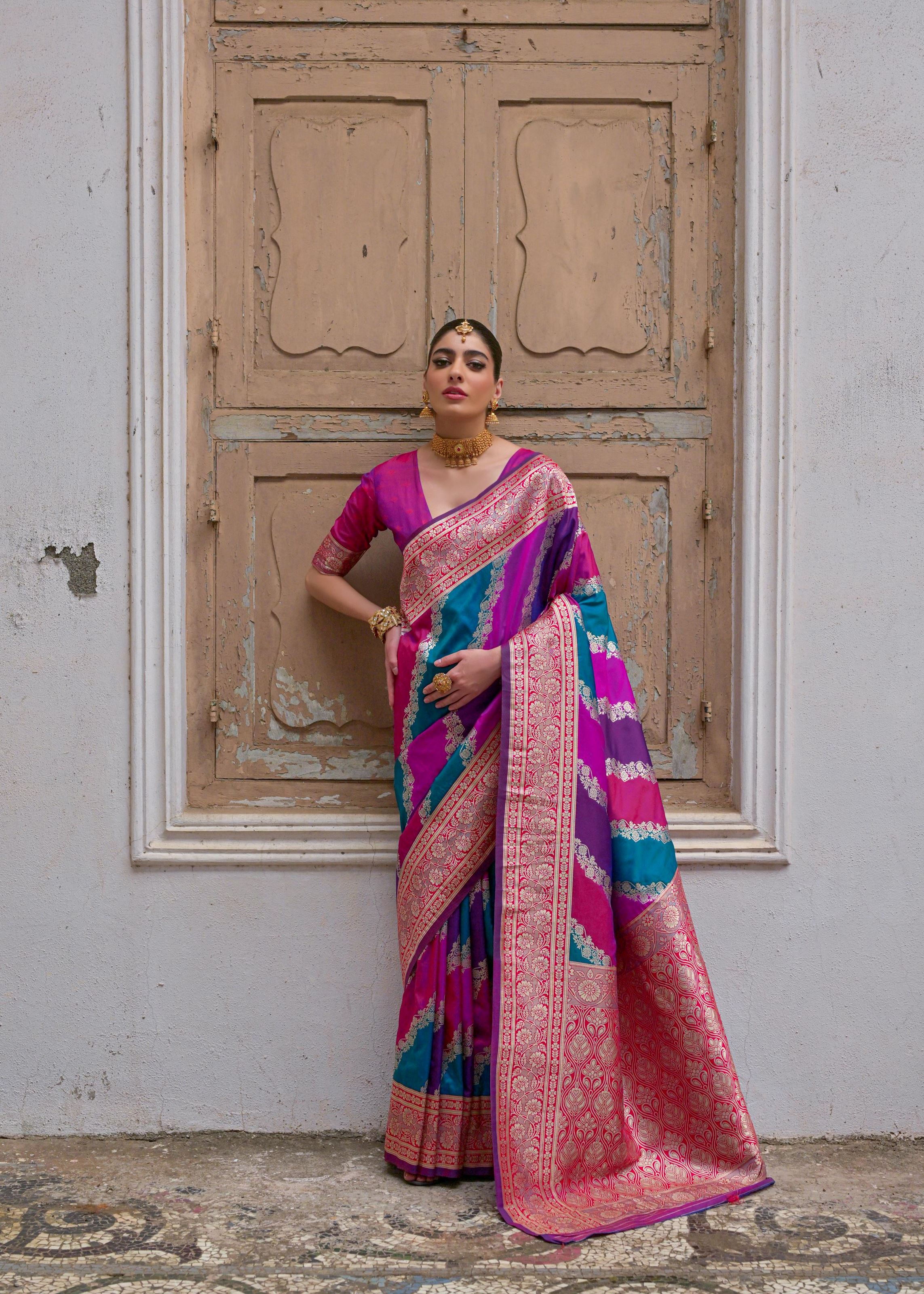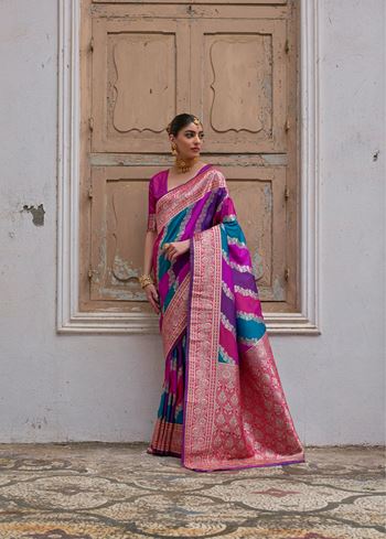 Embrace the grandeur of Banaras weaving with the Pink Handloom Woven Kadwa Style Designer Banarasi Silk Saree, a symbol of timeless elegance and luxury. Crafted from a rich silk blend fabric, this saree features a lustrous texture and fluid drape, making it perfect for weddings, festive occasions, and cultural celebrations.