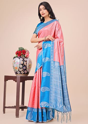 Pink Lichi Silk Woven Designer Festive Graceful Saree