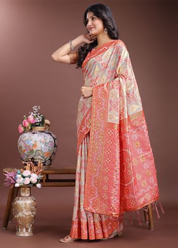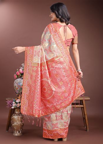 Pink Linen Cotton Woven Jacquard Designer Beautiful Traditional Saree