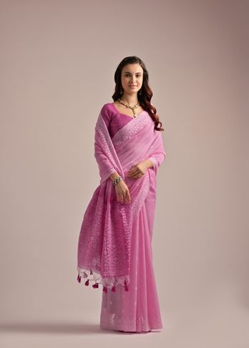 Pink Muga Cotton Saree with Thread Butti and Lakhnawi Pallu