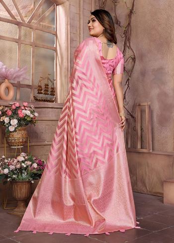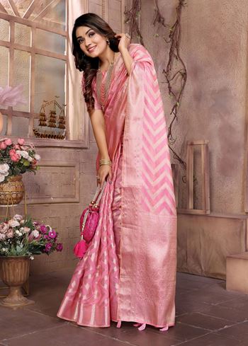 Pink Organza Woven Jari Designer Heavy Ceremonial Saree