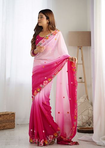 Step into glamour with the Pink Pedding With Embroidery Work Bollywood Style Georgette Saree, a flawless fusion of traditional elegance and contemporary Bollywood-inspired design. Made from premium faux georgette, this saree drapes effortlessly, providing a lightweight and graceful feel for all occasions. The intricate embroidery adds a delicate and sophisticated touch, elevating its ethnic appeal. Complemented with a matching pink faux georgette blouse, this ready-to-wear ensemble offers a seamless, stylish look without the need for stitching.