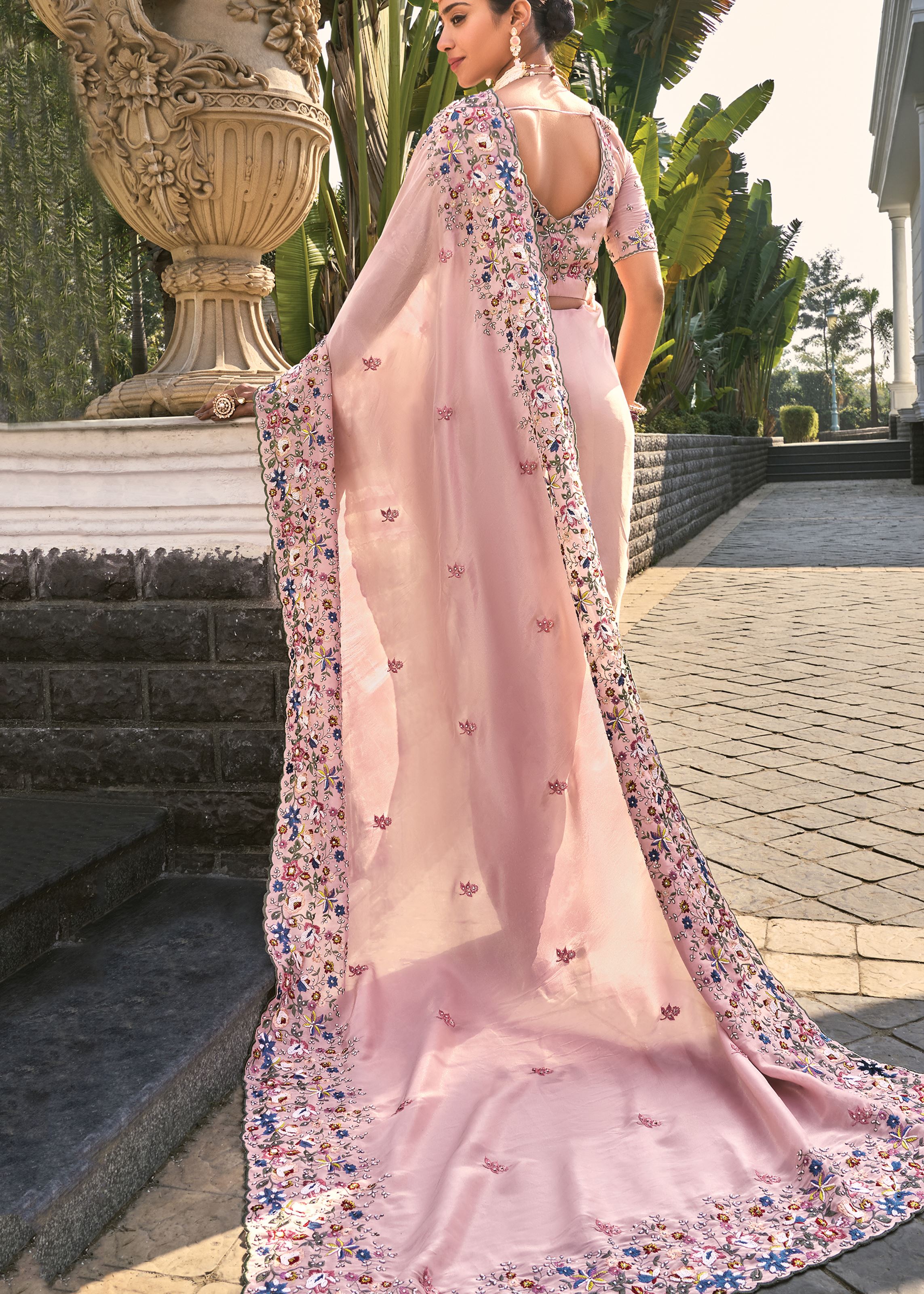 Pink Pure Banarasi Jari Saree With Embroidery Work
