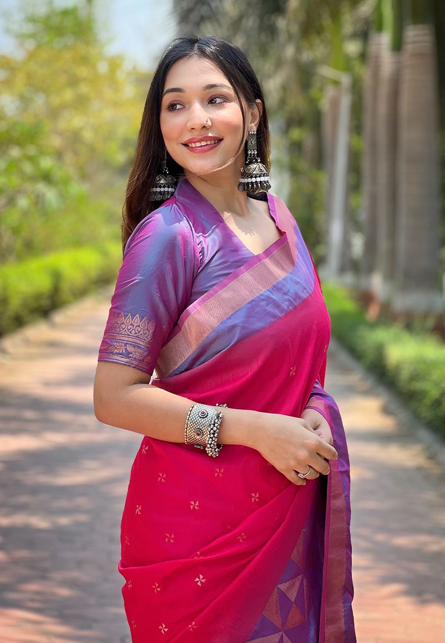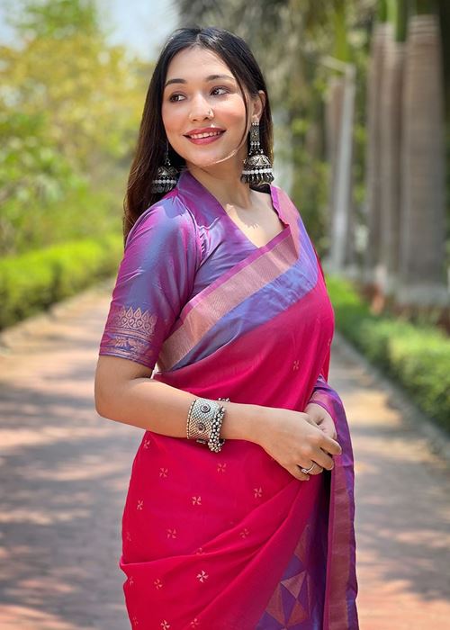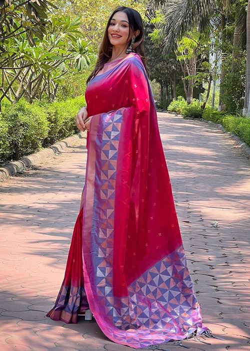 Pink Silk Blend Saree With Floral Border Zari Woven Work