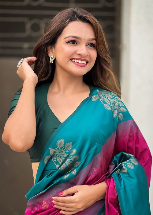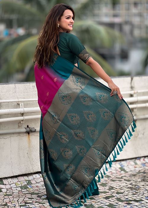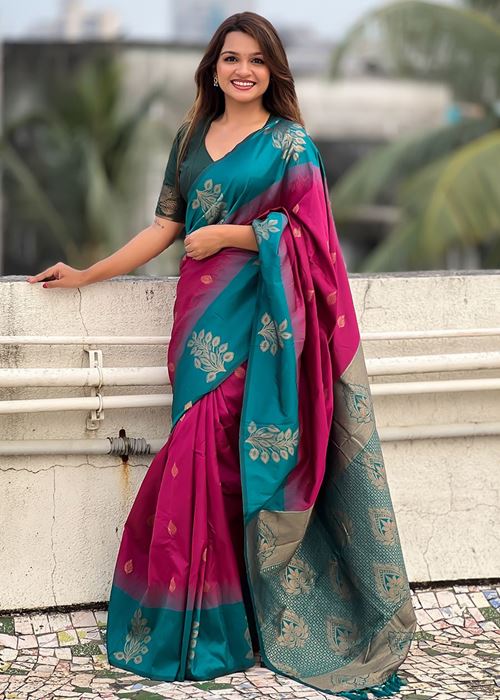 Pink Silk Blend Saree With Floral Border Zari Woven Work