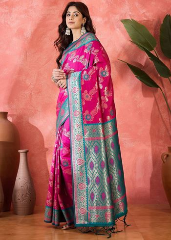 Pink Silk Woven Designer Partywear Ethnic Silk Saree