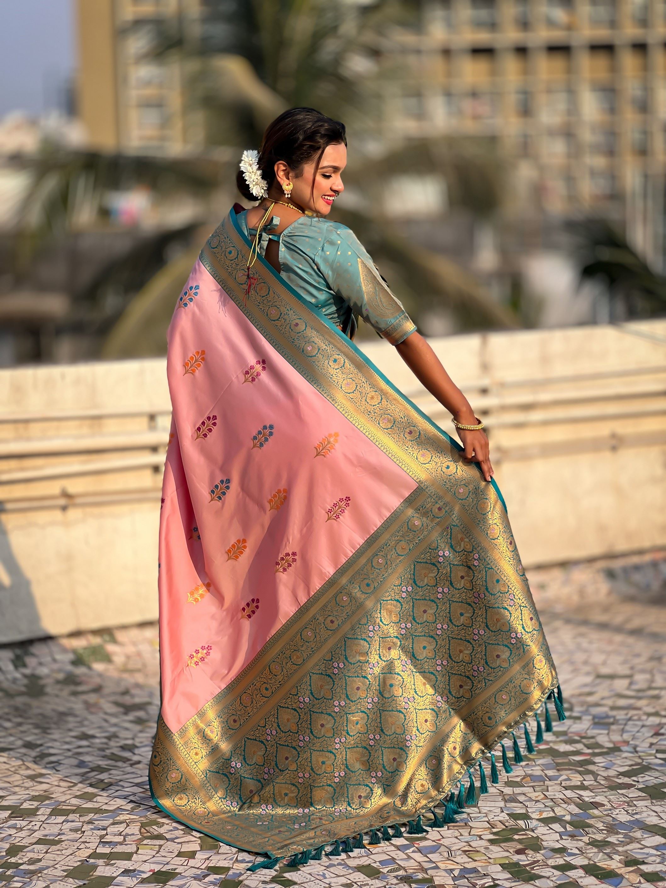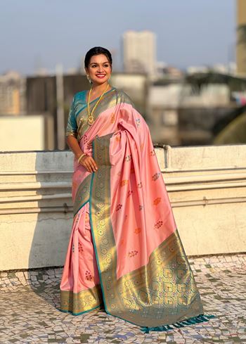 Pink Soft Silk Woven Meenakari Designer Heavy Ceremonial Saree