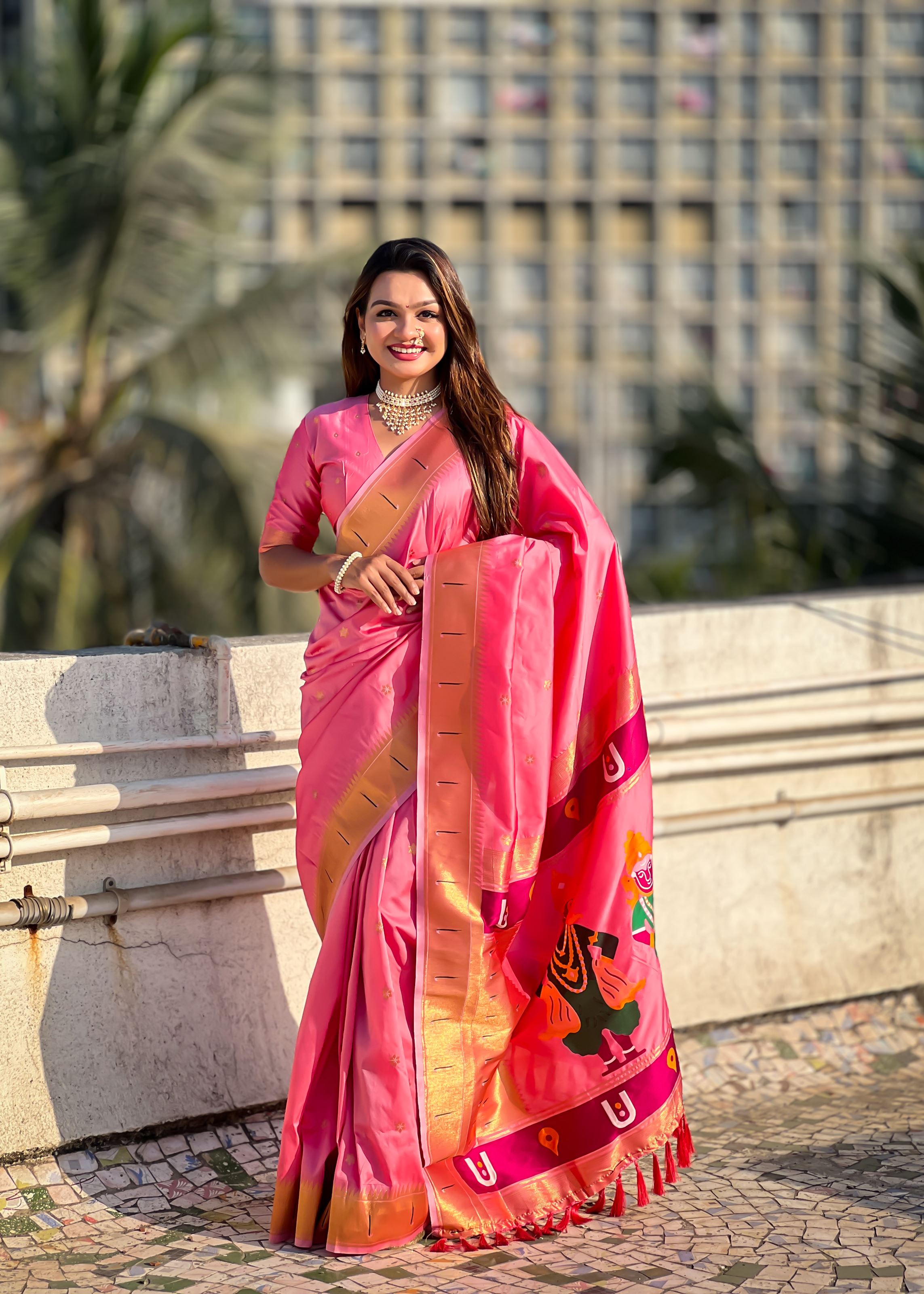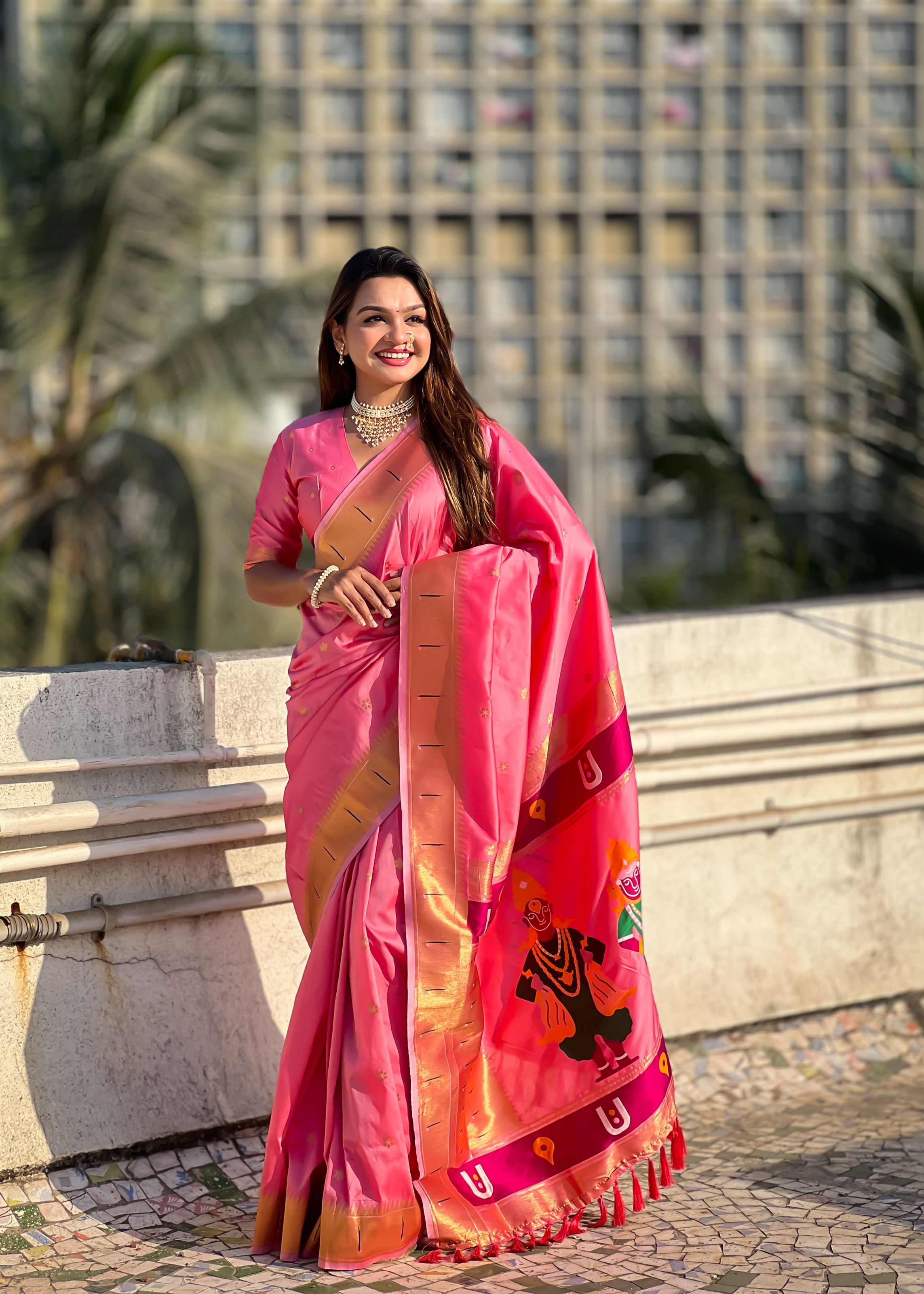 Pink Soft Silk Woven Vitthala Designer Traditional Ethnic Saree