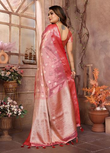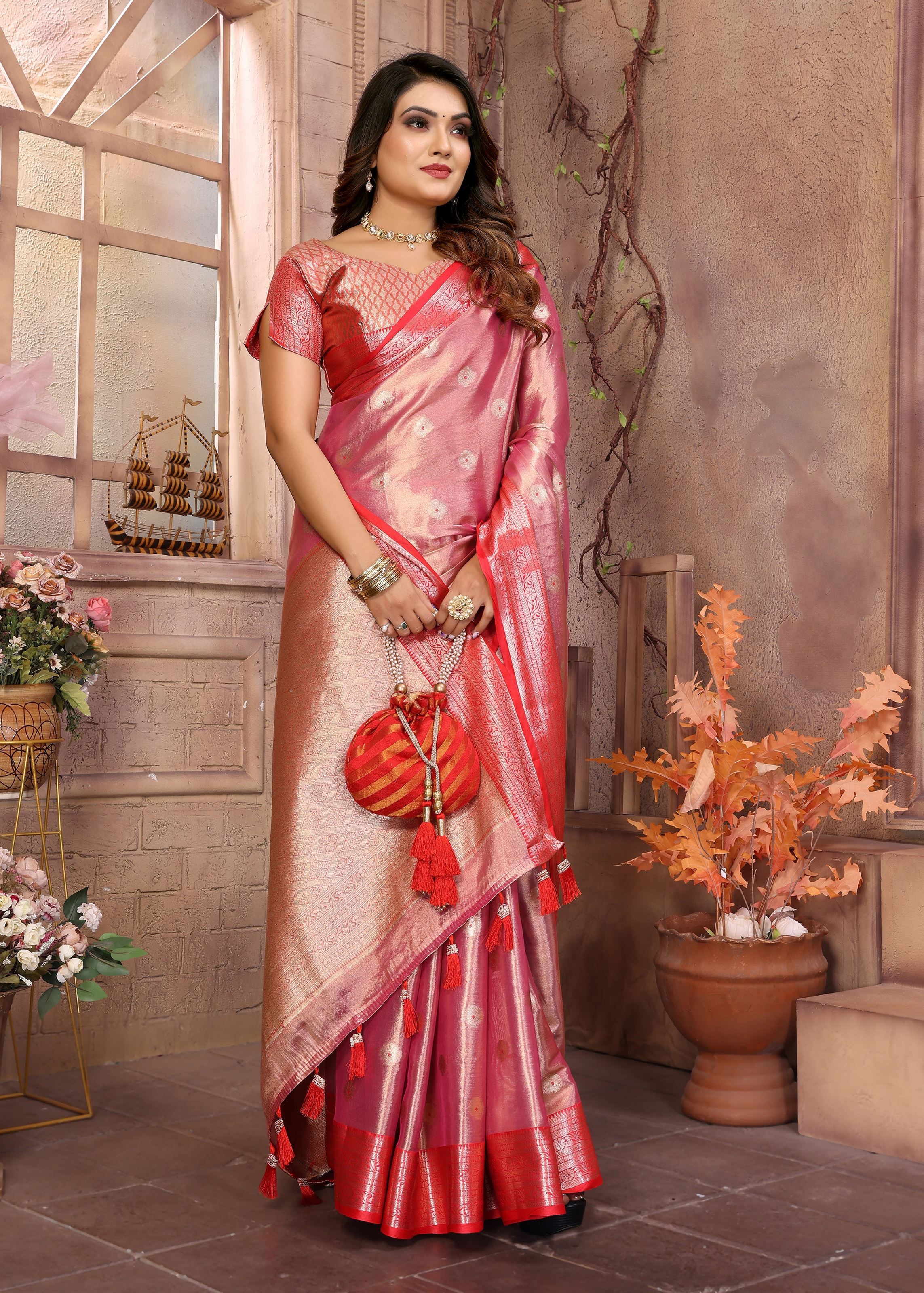 Pink Tissue Silk Ethnic Saree With Woven Handloom Designer
