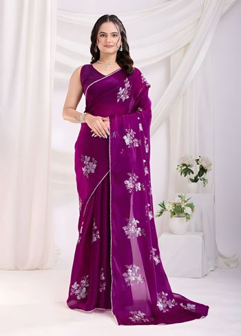 Pink Zimmy chu Saree with C-Pallu multi Embroidery with sequins Work
