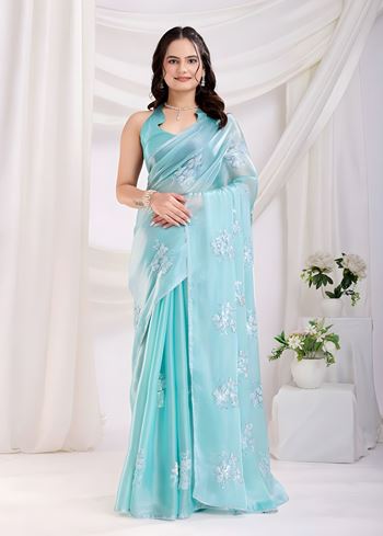 This saree is perfect for the modern woman who values tradition with a fresh, contemporary twist. Pair it with pastel kundan jewelry or pearl accents to complete the look.