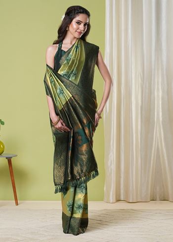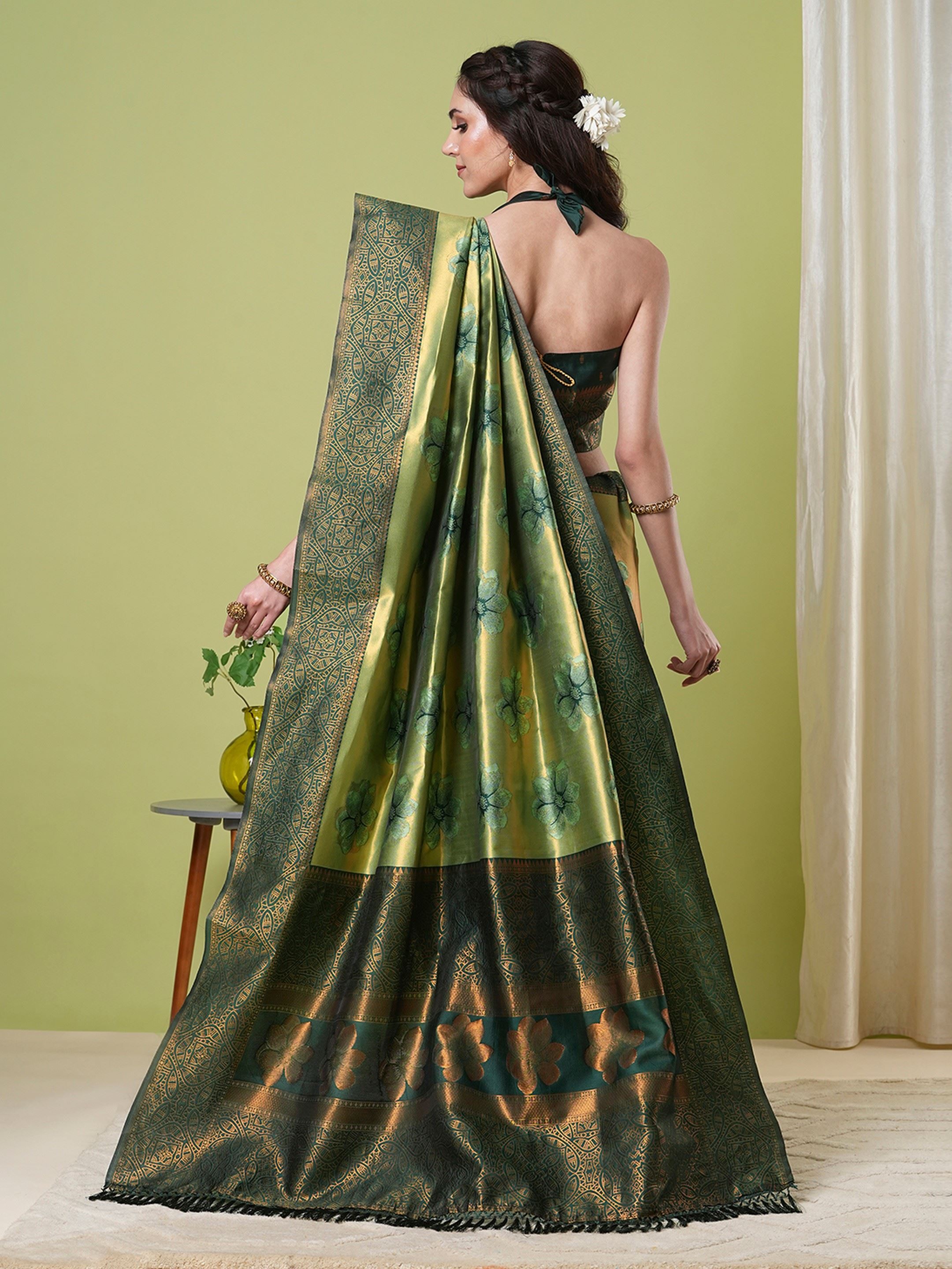Pista Banarasi Silk Woven Jacquard Designer Partywear Saree