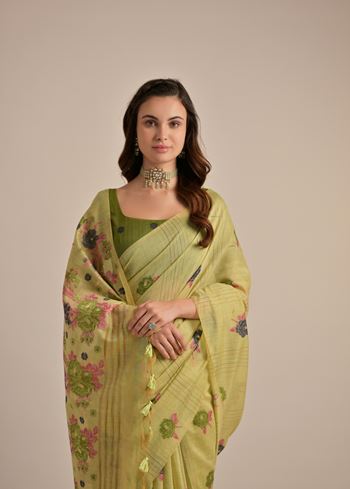 Pista Beautiful Girly Looks Multy Floral Weaving Designer Muga Cotton Saree
