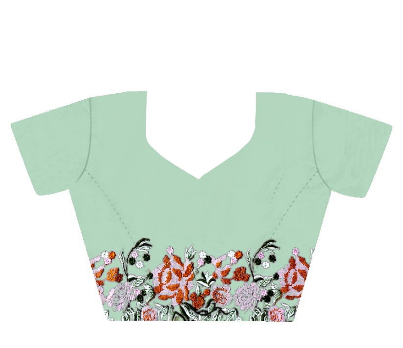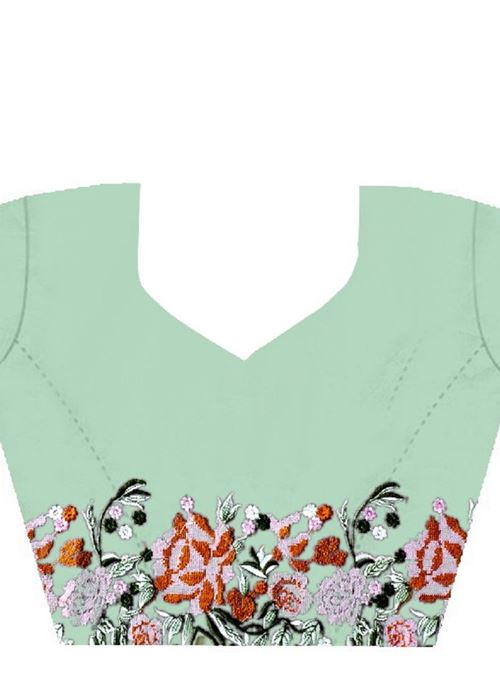 Pista Colour Soft Glossy Silk Heavy Embroidery Work Saree