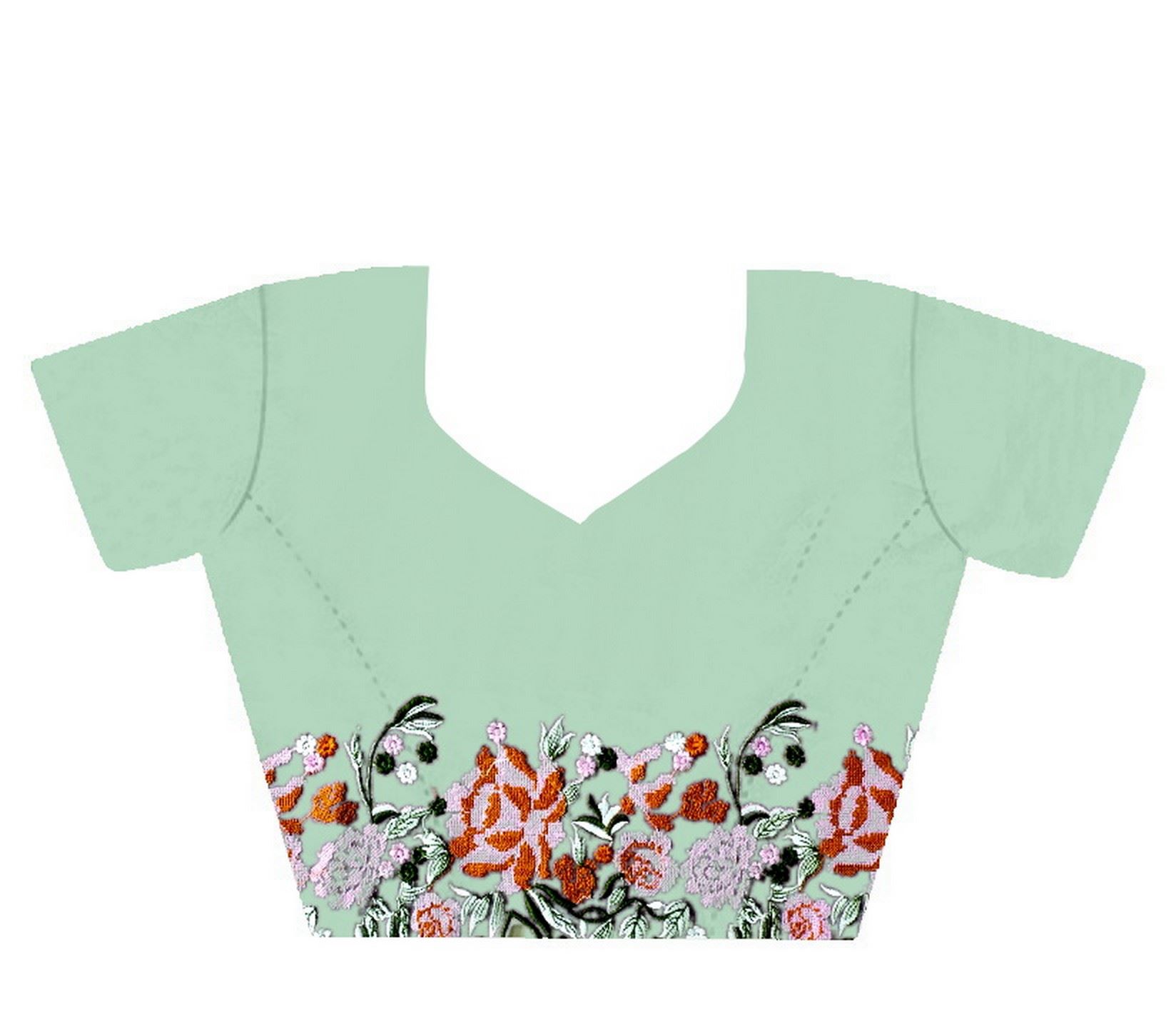 Pista Glossy Silk Cross Stitch Embroidery Cut Work Adorable Partywear Girlie Saree