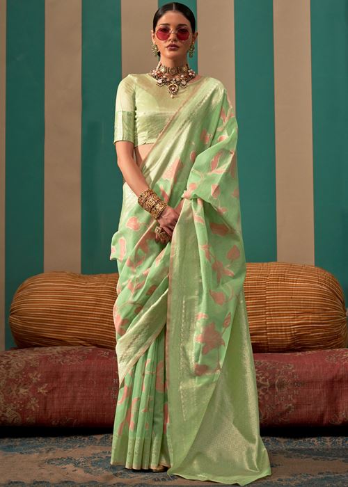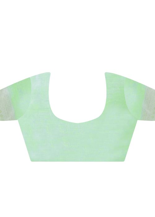 Pista Green Linen Saree With Jacquard Woven Work