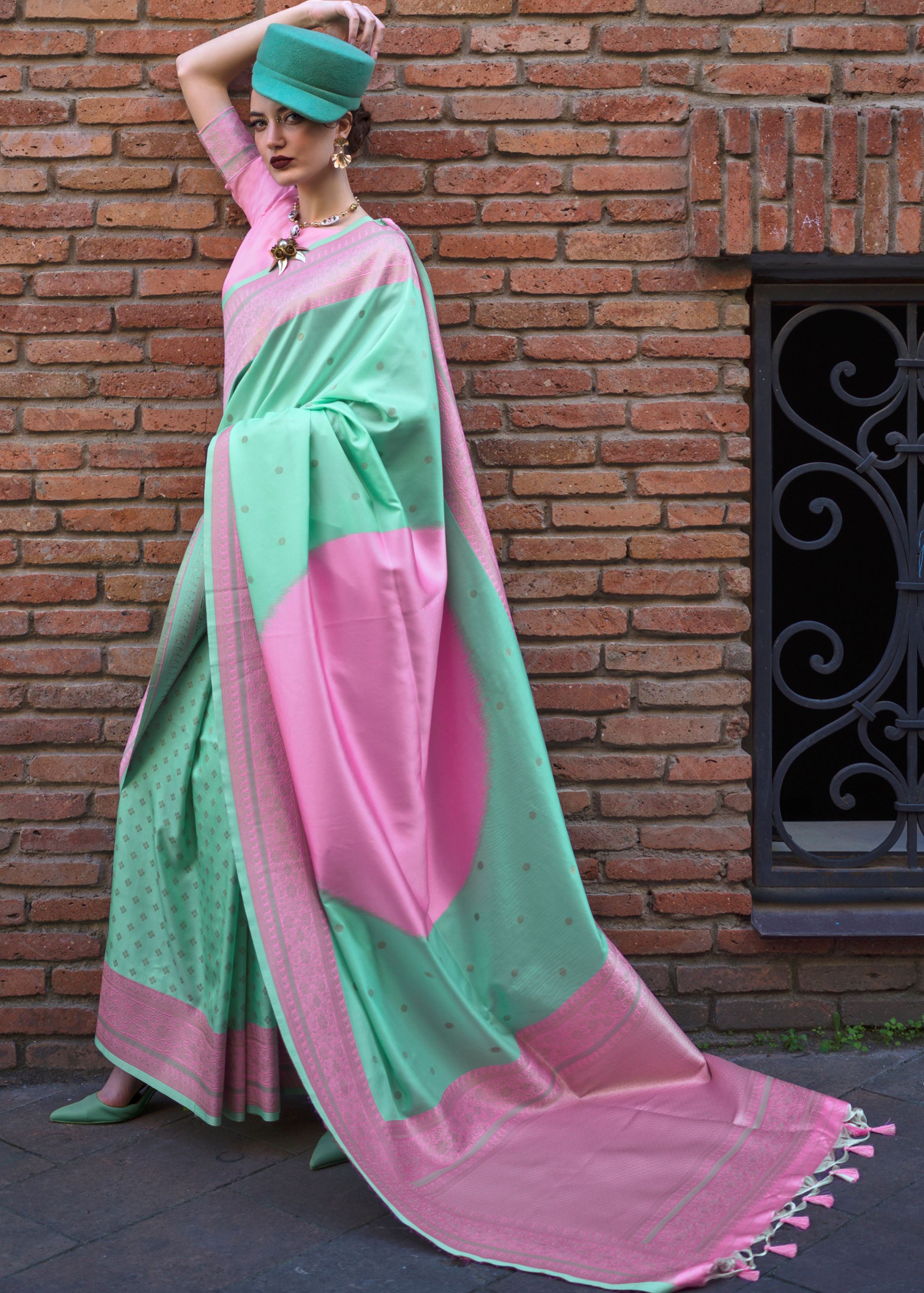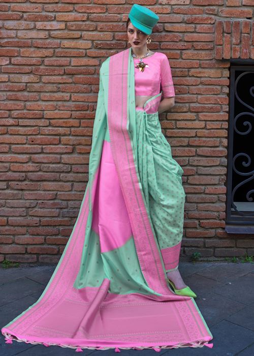 Pista Green Soft Silk Saree with Jacquard Woven Work