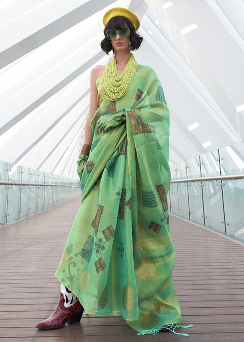 Pista Green Tissue Saree With Digital Print
