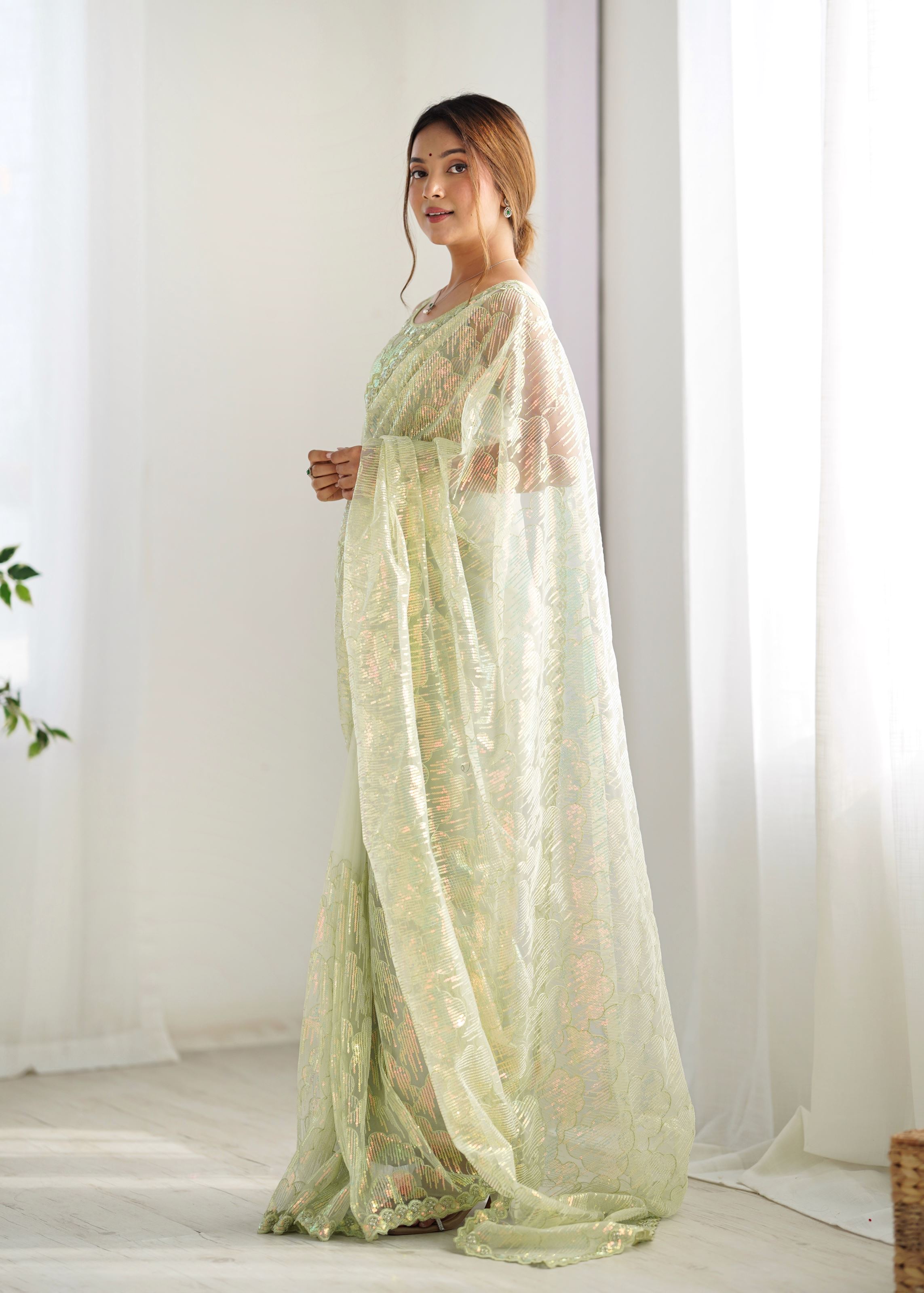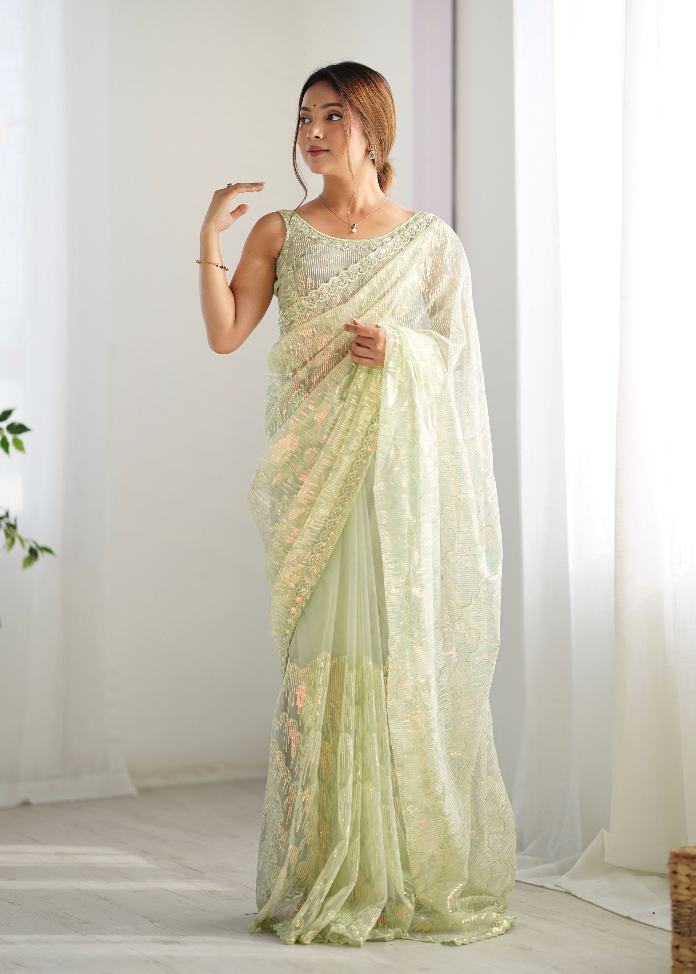 Pista Mono Net Beautiful Bollywood Saree With Designer Sequins Work