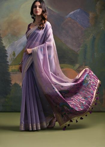 The soothing pista green hue lends an understated elegance to the drape, while the body is beautifully adorned with intricate butti weaves that add a delicate touch of artistry. The true showstopper is the peacock motif on the pallu, a timeless symbol of beauty and grace, woven with finesse to create a striking statement.