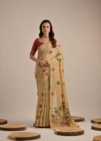Perfect for semi-formal occasions, traditional festivities, or even as a refined workwear option, the Pista Muga Cotton Saree with Thread Woven Flower Design brings together heritage craftsmanship, natural tones, and effortless grace in one beautiful ensemble. Pair it with antique jewelry or simple studs to complete the look with poise.