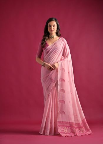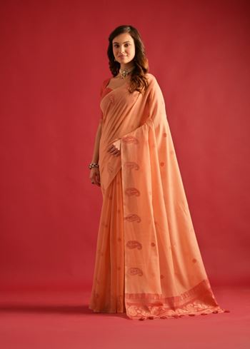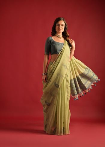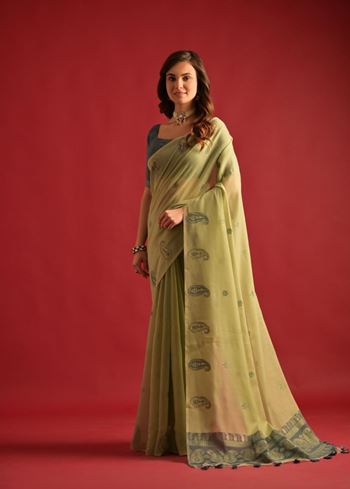 Pista Mul Cotton Saree with Keri Pallu and Butti Weaves