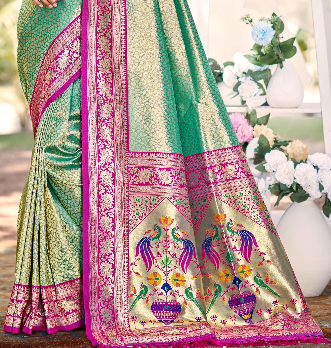 Pista Multi Color Kanjivaram Silk Saree With Effortless Style and Everyday Grace