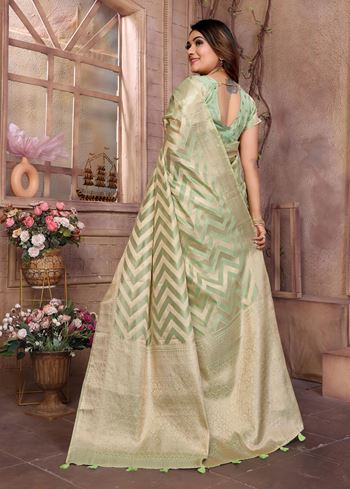Pista Organza Woven Jari Designer Heavy Ceremonial Saree
