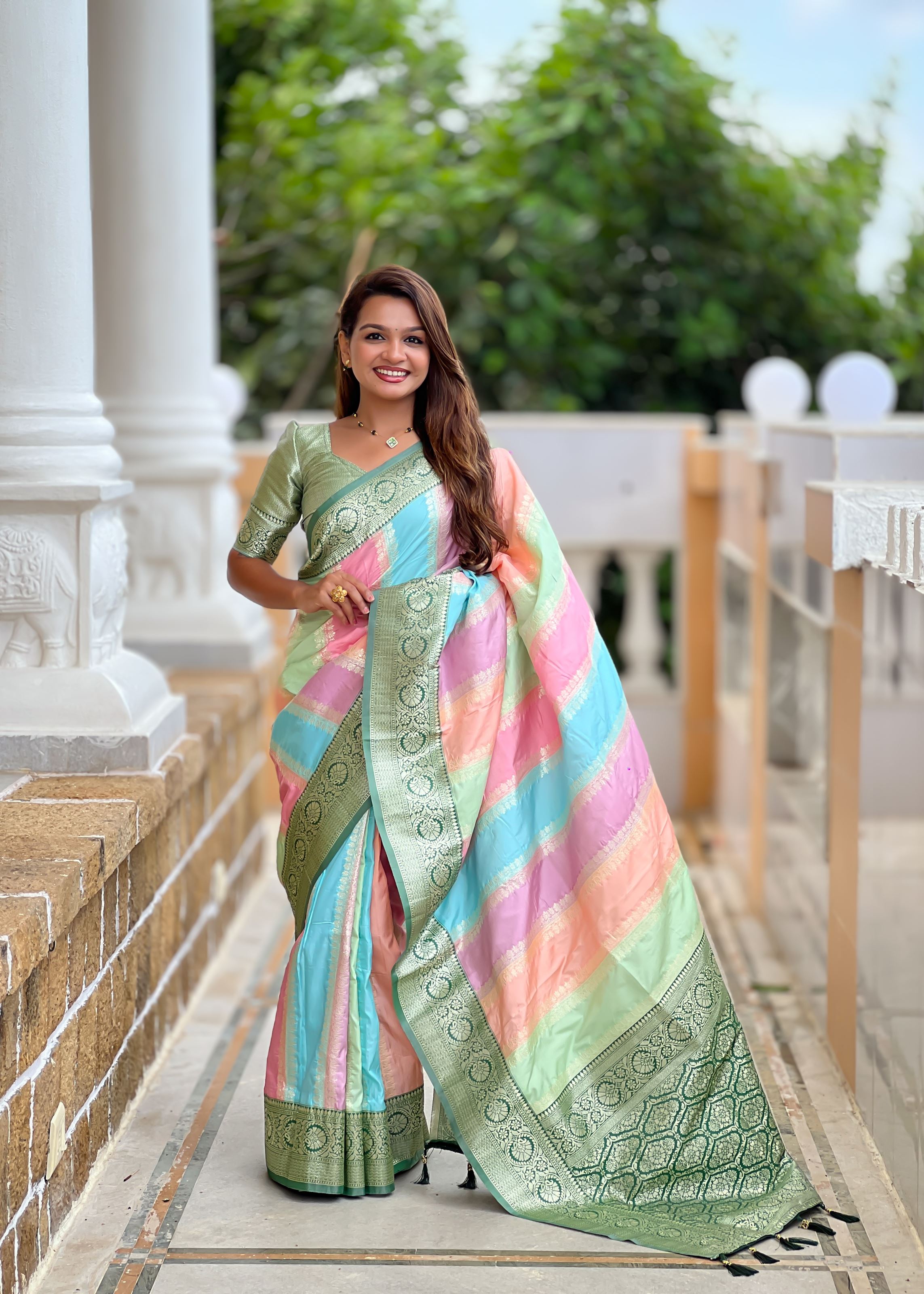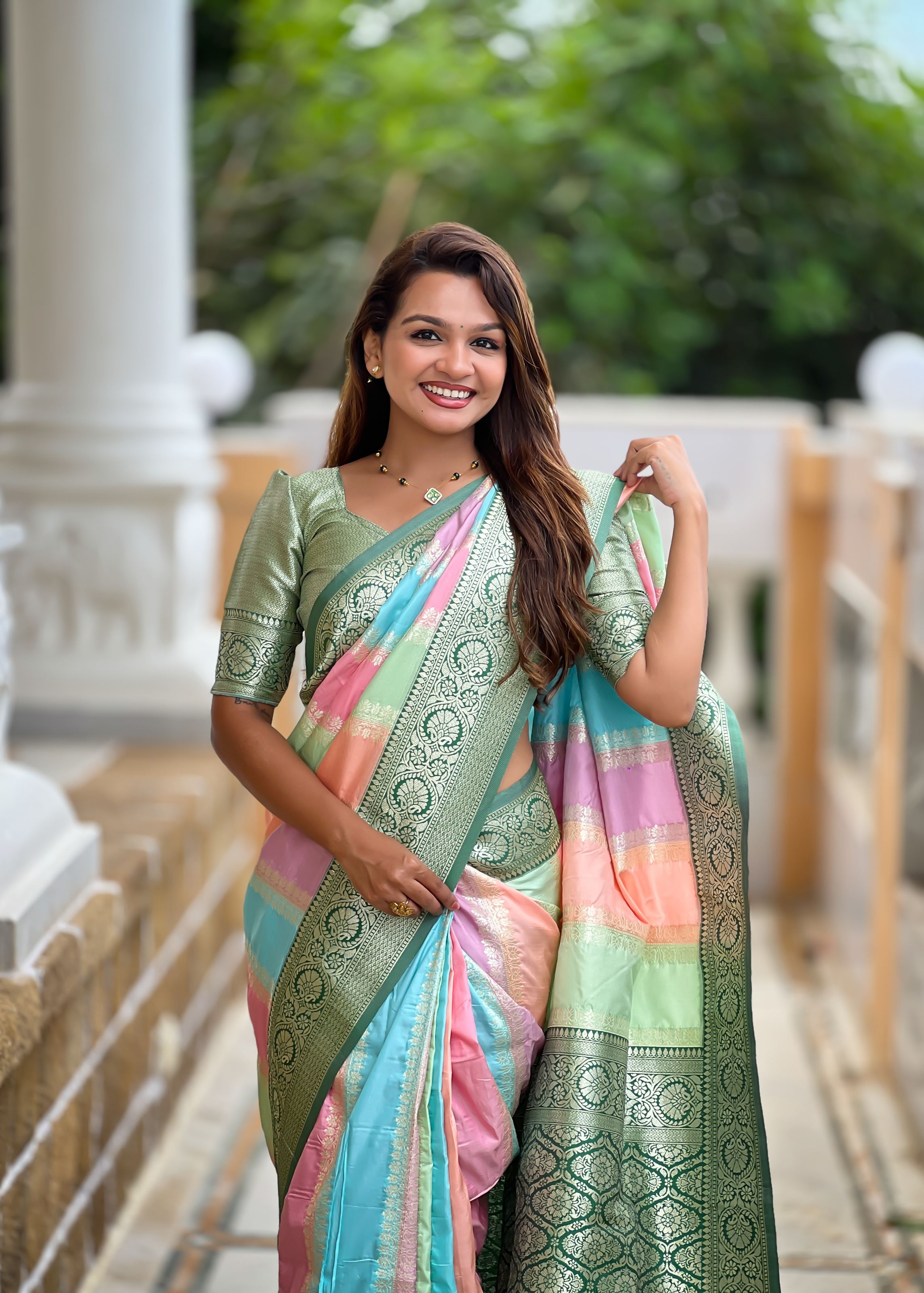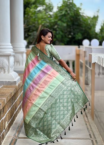 Pista Soft Silk Woven Jacquard Designer Festive Wear Traditional Saree