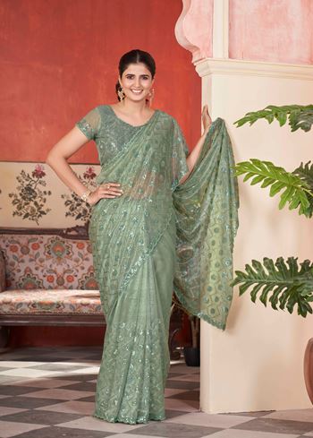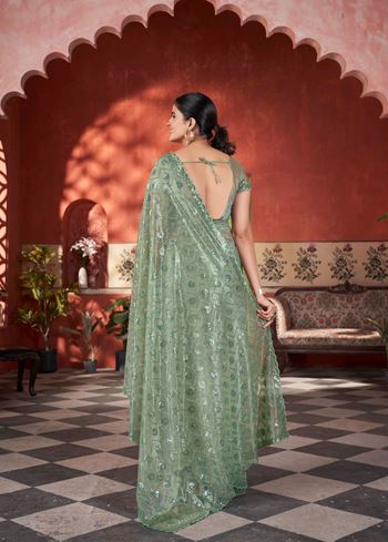 Pista Tissue Net Glamorous Partywear Bollywood Saree
