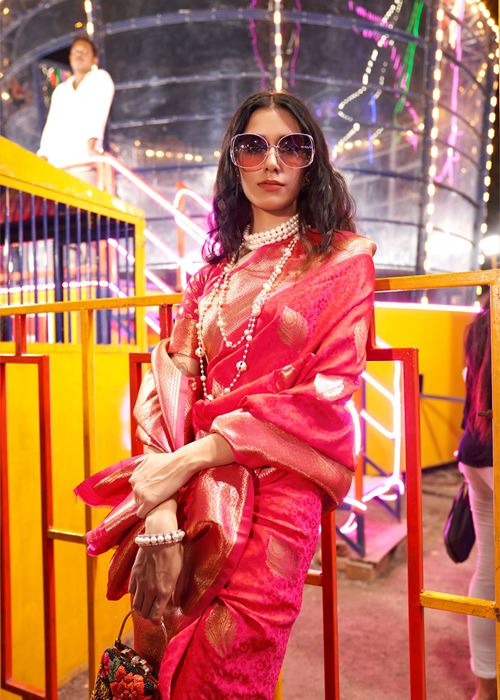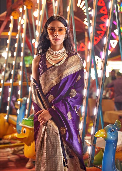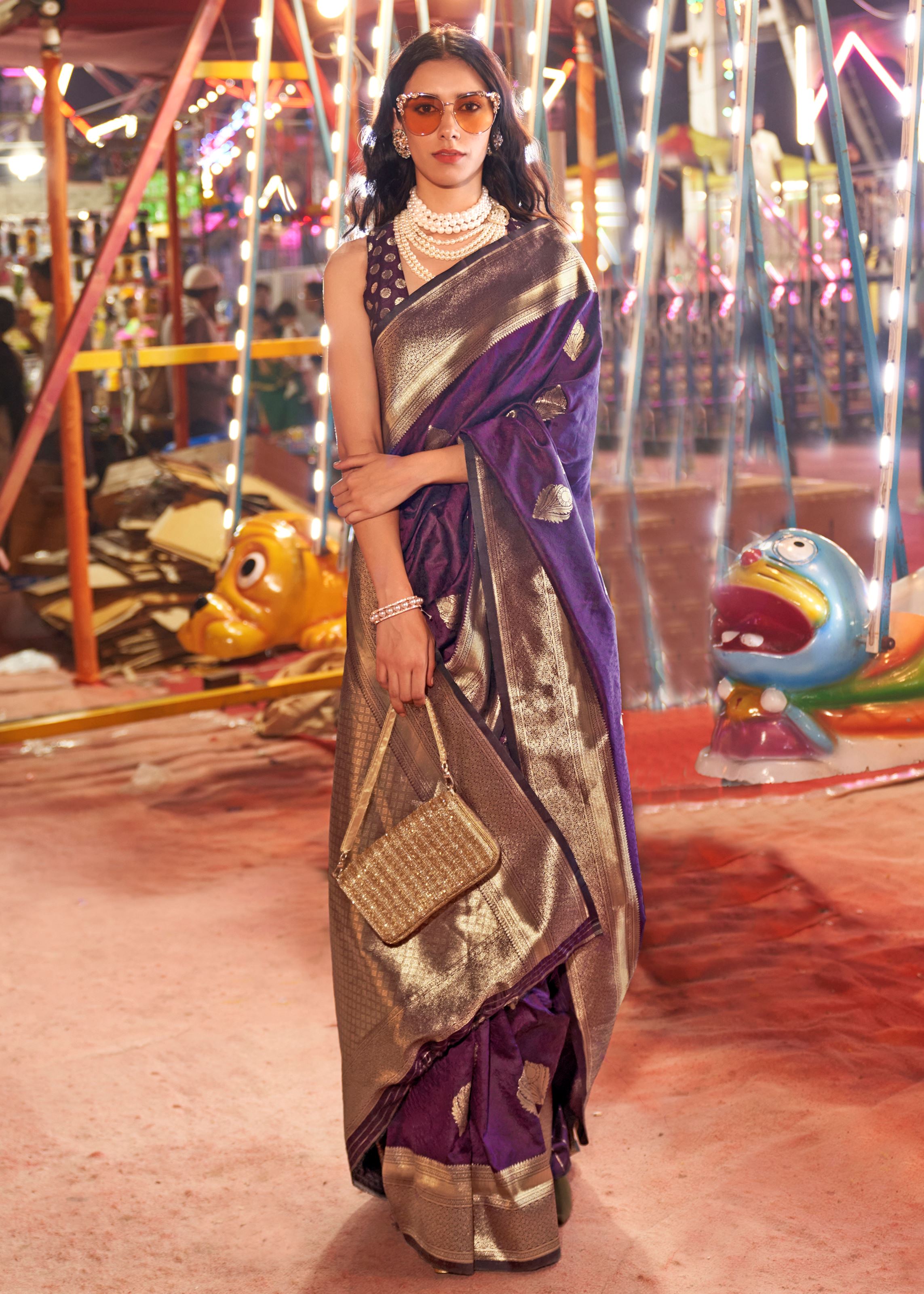 Purple Banarasi Silk Saree With Jacquard Woven Work