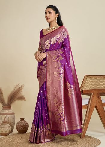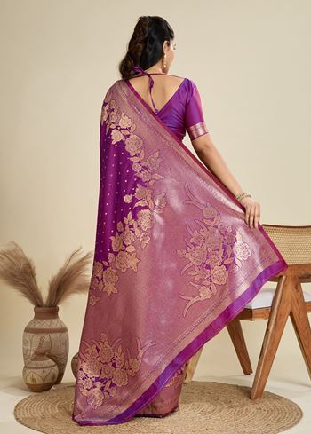 Purple Banarasi Silk Saree with Butti and Floral Border