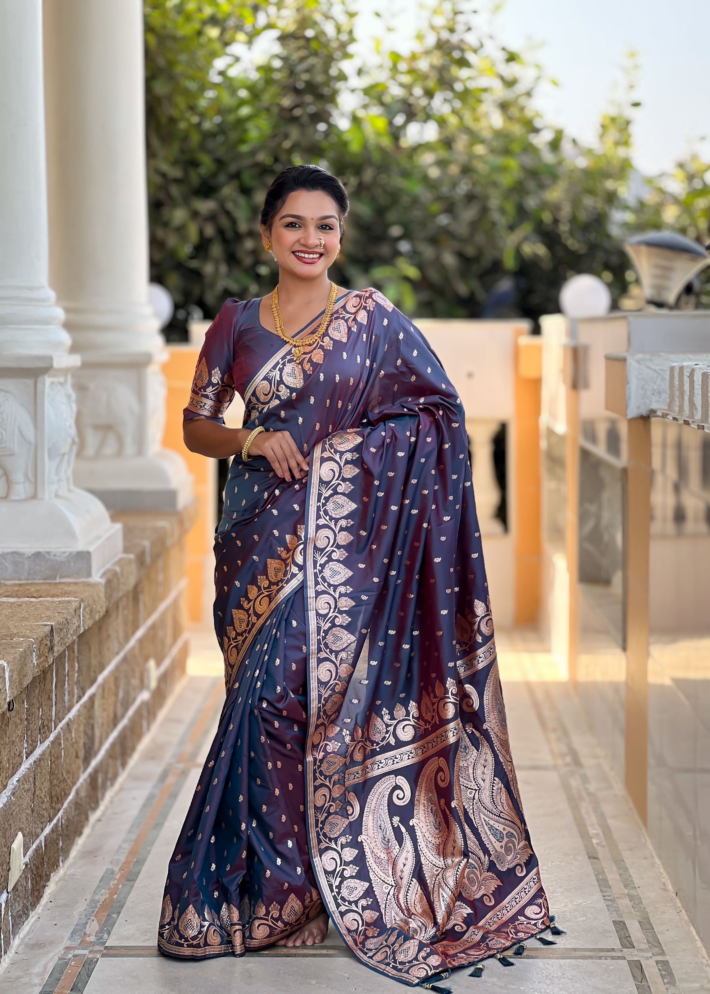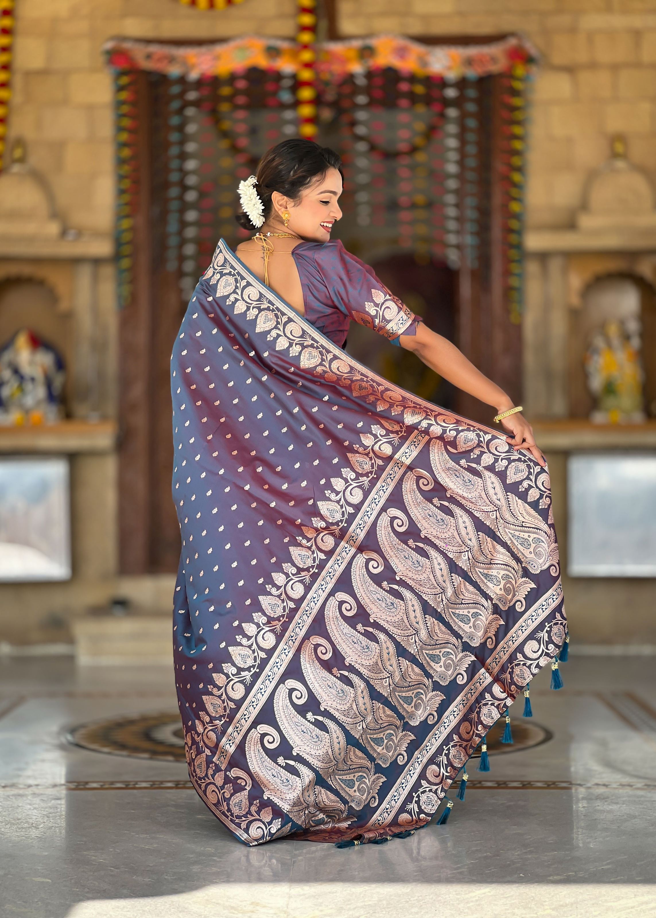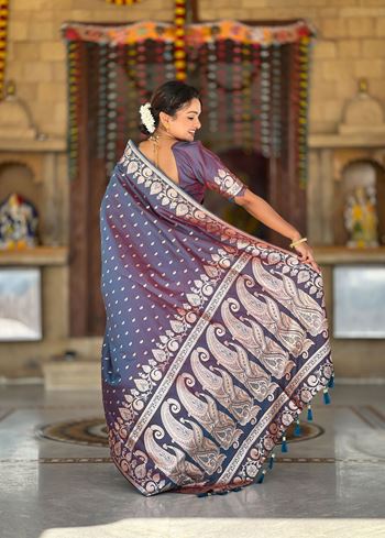 Purple Banarasi Silk Saree With Woven Jacquard Designer Partywear Saree