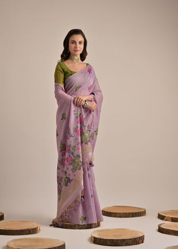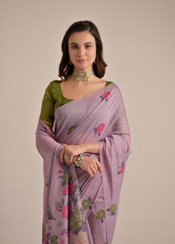 Add a regal touch to your ethnic wardrobe with this Purple Beautiful Girly Looks Multy Floral Weaving Designer Muga Cotton Saree from Aethnofit Fashions. Made from premium blended cotton, this saree embodies the richness of muga cotton while remaining soft, breathable, and easy to drape. The deep purple body is beautifully decorated with multi-floral woven motifs that highlight traditional weaving artistry. Paired with a contrasting green blended cotton blouse, this ensemble strikes the perfect balance between elegance and vibrance.