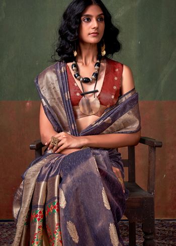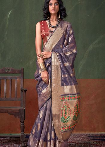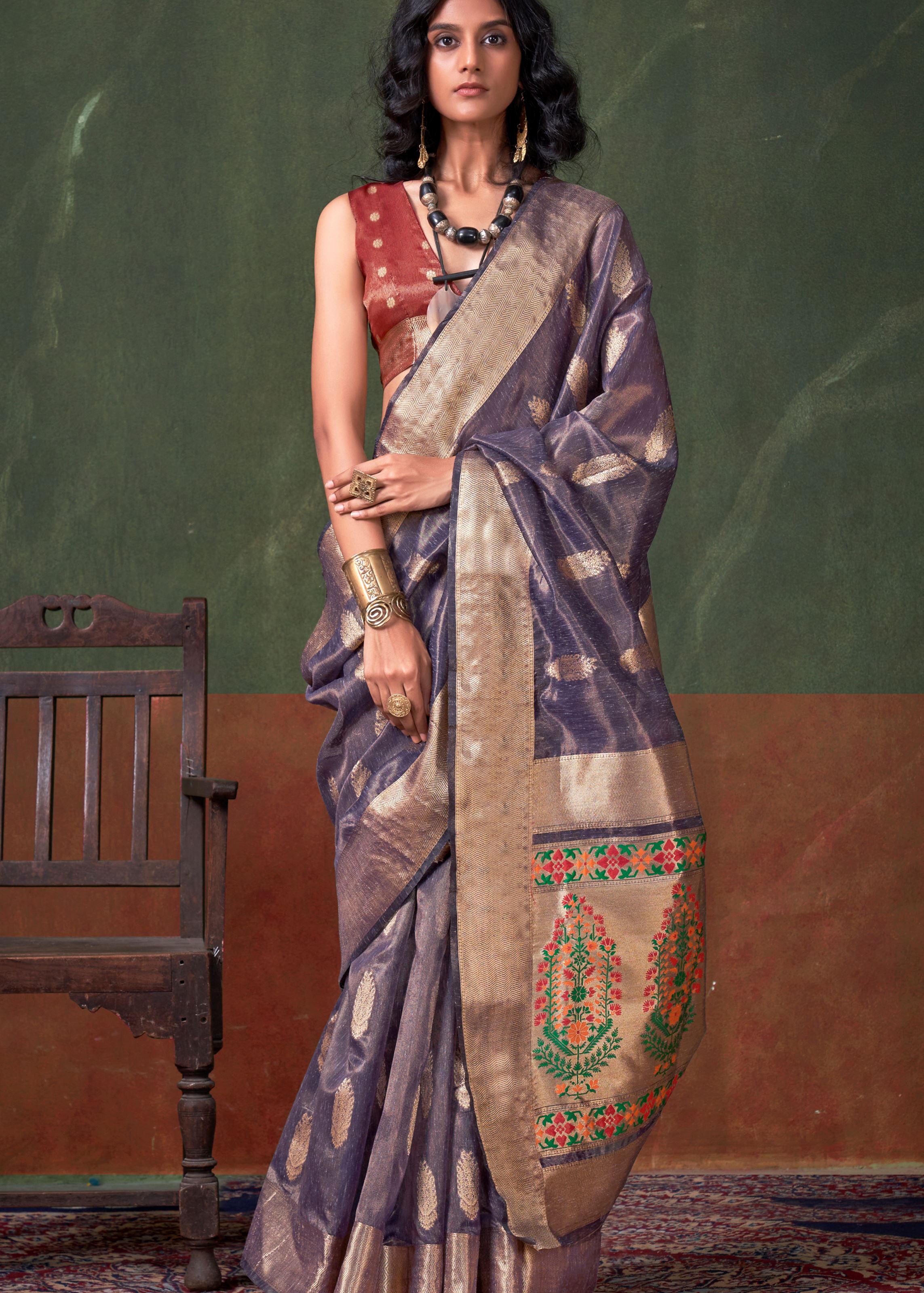 Purple Color Tissue Silk Saree with Jacquard Woven Work